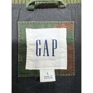 Gap Mens Jacket Sz L Camo Bomber Army Green Pockets 100% Cotton Full Zip Casual