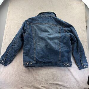 Gap Mens Jean Jacket Size XL Blue Denim Sherpa Lined Collared Button Up Cozy
