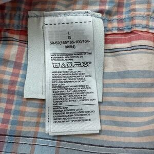 Gap Men's L Short Sleeve Poplin Button Up Light Blue Red Plaid Slim Fit Stretch