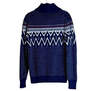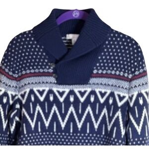 Gap Men’s Lambswool Sweater Shawl Neck Pullover Fair Isle Apres Ski Navy Blue S