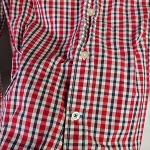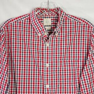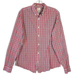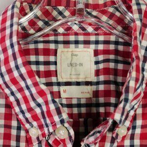 Gap Mens Lived In Mens Size M Button Down Shirt Red White Blue Plaid Cotton