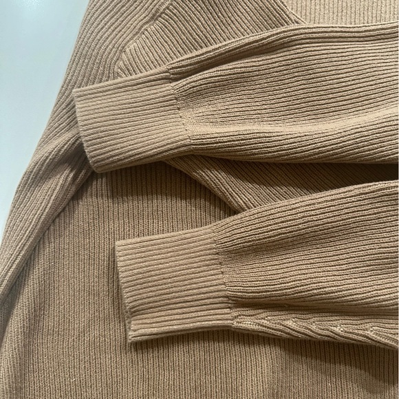 Tan/burnt Orange Ribbed Sweater from Gap Factory. A little oversized mostly just a little longer.