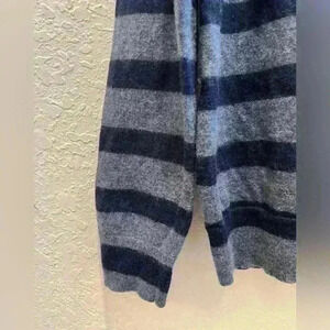 Gap Men's Sweater Grey Striped Size Large 100% Extra Fine Merino Wool