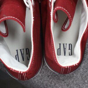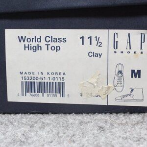 Vintage old stock Gap Mens World Class High Top Sneakers, Royal Red Maroon Clay, Men's Size 11.5. These are a pair of rare vintage sneakers from the Gap brand back in the 1990s, kind of unusual to see these online as the Gap did use to sell lots of high top sneakers recreated in the fashion of other popular brands (Converse, PF Flyers, etc). These do appear to have been worn at one point but only lightly and still very great condition deadstock. Inside soles are excellent with minimal wear if any and no depressions, side walls excellent with soft rubber and no cracking, canvas is pristine with no stains or scuffs, bottom soles also excellent with lots of original tread left. Comes with box.