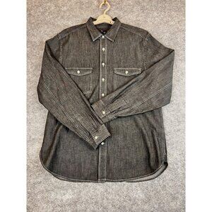 Gap Mens XL Black Denim Button-Up Shirt With Dual Chest Pockets & White Stitch