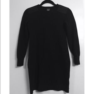 **Only worn once. Little black sweater dress, slightly fitting. Flatters your shape. Patches on the shoulders to add some flavor to this closet staple!