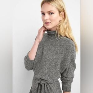 Gap Merino Wool Funnel Neck Tie-Belt Midi Dress Gray Women's Size Meduim