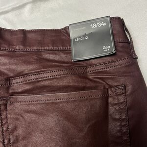 * Title: Gap Mid Rise Plus Size 18/34R Burgundy Coated Faux Leather Skinny Pants Grunge