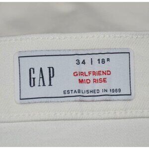 Gap Mid-Rise Girlfriend Ankle Jeans Optic White Size 18R 34 Raw Hem Classic