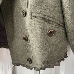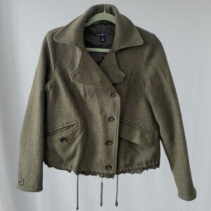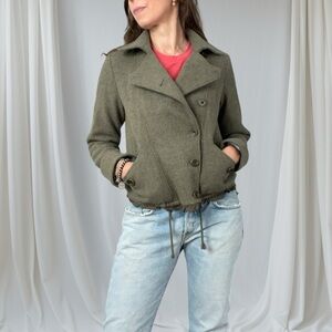 Gap Military Wool Lightweight Cropped Jacket. In good condition but did have two small holes, one at front and one at sleeve which I sewed. See photos. Perfect for fall and on trend.