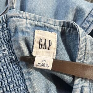 Gap Mini Dress Womens Size 20 Blue Denim Light Wash Babydoll Smocked Sleeveless Boho Festival