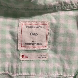 Gap Womens Medium Tall Mint Green Gingham Plaid Fitted Boyfriend Button Up in good used condition. No stains, tears or rips.