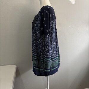 Gap Mix Print Pintuck Long Sleeve Tops Size Large Paisley Navy & Green Flowy