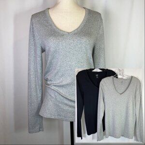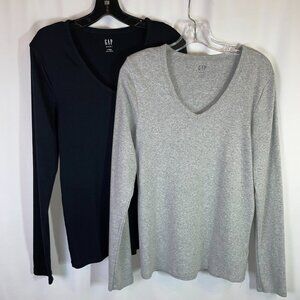 Gap Modern Tee Bundle of 2 Size L Tall Black Gray V Neckline Long Sleeves