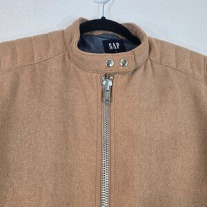Gap Women Medium Moto Short Jacket Quilted Shoulders Wool Blend Full Zip Tan Pockets Fall. Pre-owned