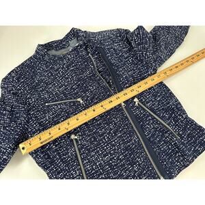 Gap Moto Jacket Wmns Small Petite Navy Speckled Zip Up Asym Cotton Lined