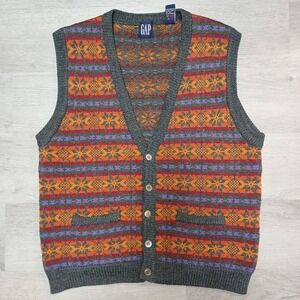 Gap Multi Color Fair Isle 100% Wool Sweater Vest Medium