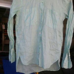 2 pockets, the color is hard to capture on camera (mint grey best true color is in pic 2), linen, button up, Hi lo