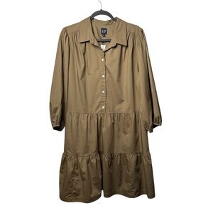 Gap NWT Khaki Tan Tiered Babydoll Collared Button Front Shirt Dress SZ XL Boho