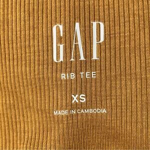 Gap NWT Ribbed Top Size XS 3/4 Sleeve Wide Round Neckline Mustard Yellow Fitted