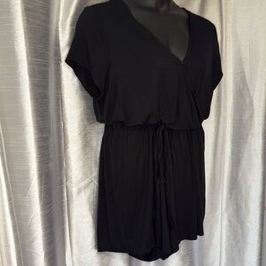 Gap NWT Women’s XL Crossover Wrap Black Jersey Knit Rayon Blend Belted Romper