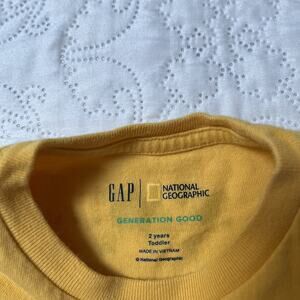 Gap + National Geographic short sleeve graphic t-shirt. Yellow with wave design and clean water fact on the back. Very good condition, minor wear. Size 2T.