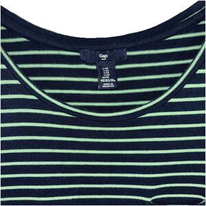 Gap's navy and green striped dress blends casual style with a nautical vibe, ideal for spring and summer wear.