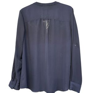 Gap Navy Blue Sheer Blouse Oversized XL Roll Tab Long Sleeve Button Front