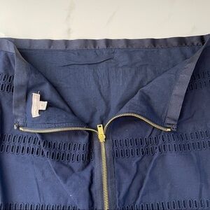 Gap Navy Blue Striped Embroidered Eyelet Mini Skirt Gold Zip Back Detail 8