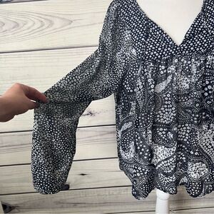 Gap Navy & White Floral Patterned Split V Neck Long Sleeve Blouse