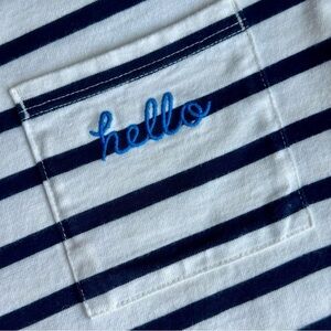 Gap Navy & White Striped “Hello” Embroidered Long Sleeve Tee