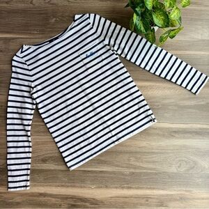 Gap Navy & White Striped “Hello” Embroidered Long Sleeve Tee – Size S