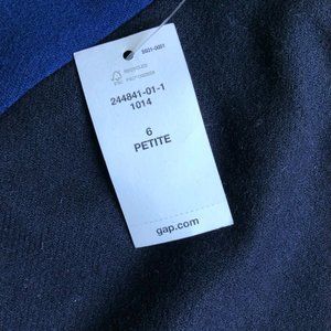 Gap navy/blue wool blend mini skirt. Size 6P. This fabulous mini skirt is navy with a blue waistband, fully lined, side zip, faux pocket detail on the back. 42% wool, 35% rayon, 23% polyester. NWT, but does have hanger marks on waistband and is a little creased. From smoke/pet-free home. Please feel free to ask if you have any questions.