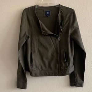Gap Light weight jacket made of Linen/Viscose. Metal button accents. Pockets have functional zipper