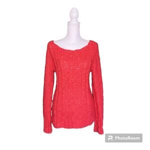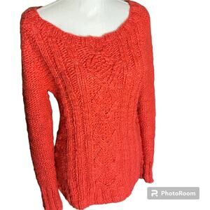 Pretty orange long sleeve hand knit sweater. Crewneck. Good pre-owned condition.