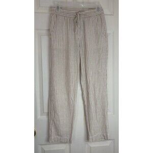Gap Pants Beige Ivory XS Easy Pant Striped Elastic Waist Linen Blend Summer