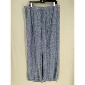 Gap Pants Womens Large Blue Linen Wide Leg Pull On Chambray Casual Coastal
