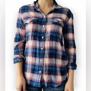 Gap + Pendleton | Women’s blue/pink/cream plaid button down shirt. Front pockets, super soft! Machine wash cold, 100% viscose. Women’s size S