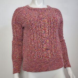Gap Gap For Good marbled pink crew-neck long-sleeve cable knit sweater.