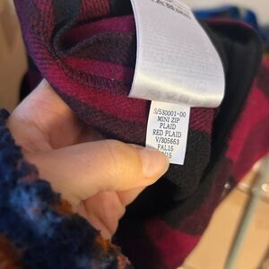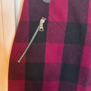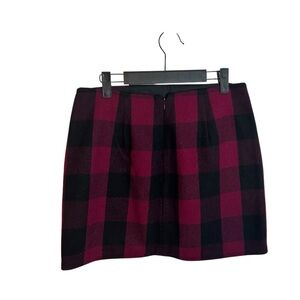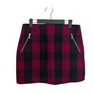 Pre owned like new. Stylish plaid wool mini skirt in pink and black. Perfect for casual outings or a night out. Features convenient zippered pockets for added style and functionality. Womens size 4.