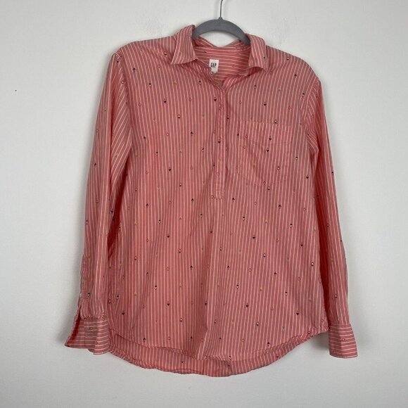 Gap Pink Striped Half Button Down Geometric Print Size Medium Blouse Top