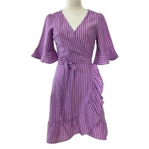 Gap Pink Striped Linen Blend Ruffle Wrap Dress Size Small NEW