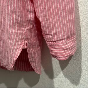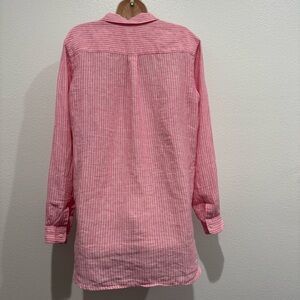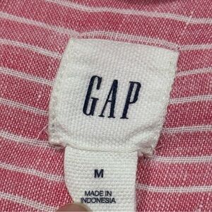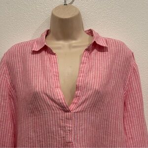 Gap Pink & White Linen Striped Tunic Blouse Size M Collared V Neck