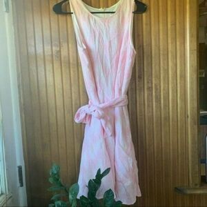 Pink & White Pullover Shift Dress with Adjustable Bowed Belt