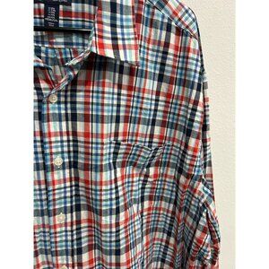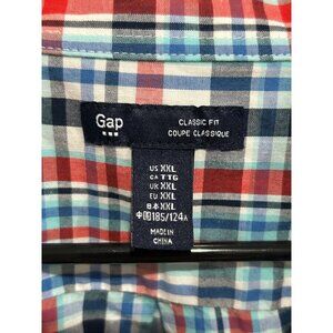 Gap Plaid Button Front Shirt Red Blue Sz XXL Classic Fit Long Sleeve Preppy