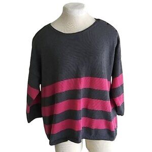 Versatile and stylish, this Gap extra-large sweater boasts bold pink and gray stripes with chic shoulder button details. Crafted from soft material, this pullover offers effortless comfort and modern chicness.