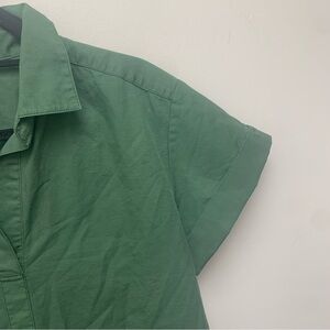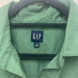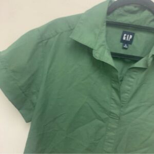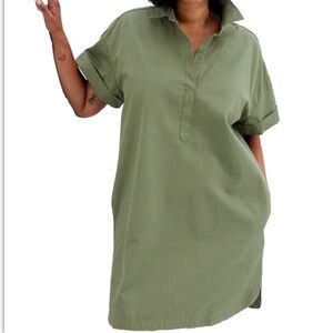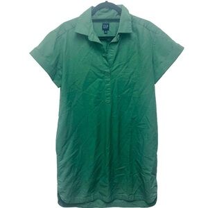 Amazing Gap Popover Mini Shirtdress in Olive. Soft cotton. Straight silhouette. Loose relaxed fit. Small pinhole in back.