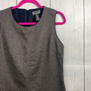 Sophisticated and timeless, this Gap Premium sleeveless sheath dress is tailored in a neutral herringbone wool-blend. Fully lined for comfort and structure, with genuine leather trim detail. Perfect for office wear, professional settings, or polished everyday looks.