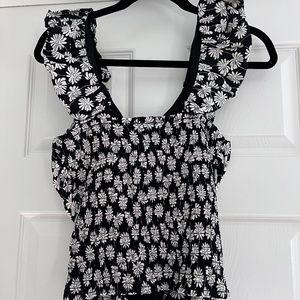 like new, black and off white floral design, with ruching / corset type fit. Size S