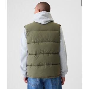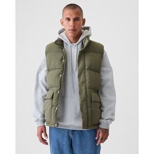 Gap Puffer Vest Mens Size XS Green With Pockets Zip Snap Front Primaloft Pure